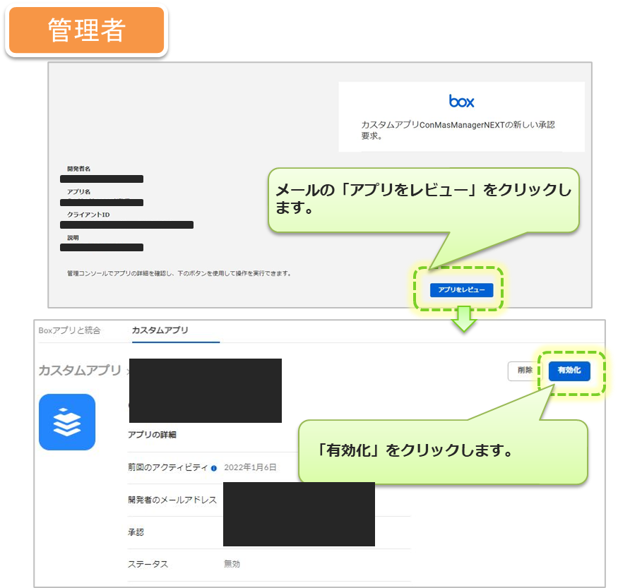 アプリを承認します。 ※承認できるのはBoxの管理者アカウントです。