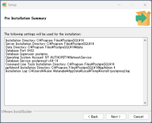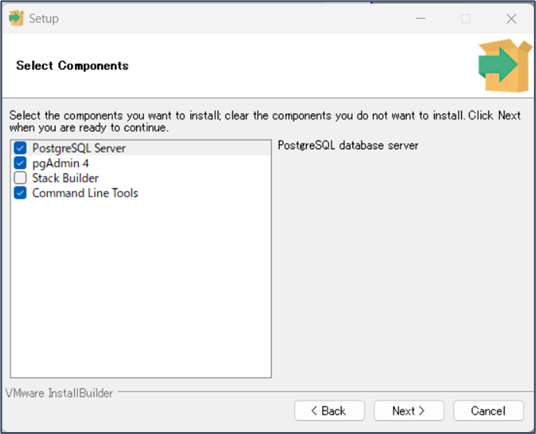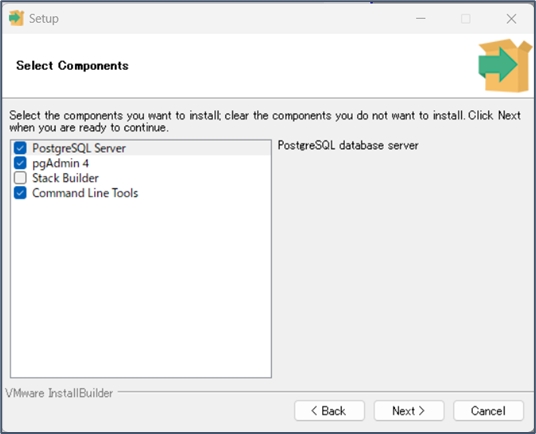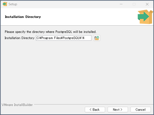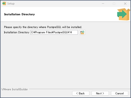 以下のファイルを実行し、既存のサーバーにPostgreSQL14をインストールします。 C:\ConMas\Tools\db\postgresql-14.7-2-windows-x64.exe