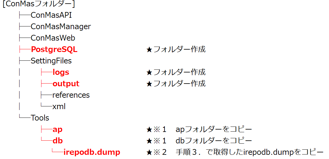 「ConMas Server インストール手順書」内の「初期データーの作成」を、以下の手順に差し替えて実施してください。
