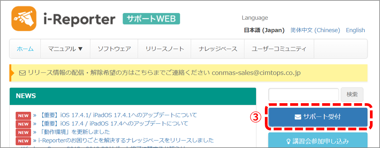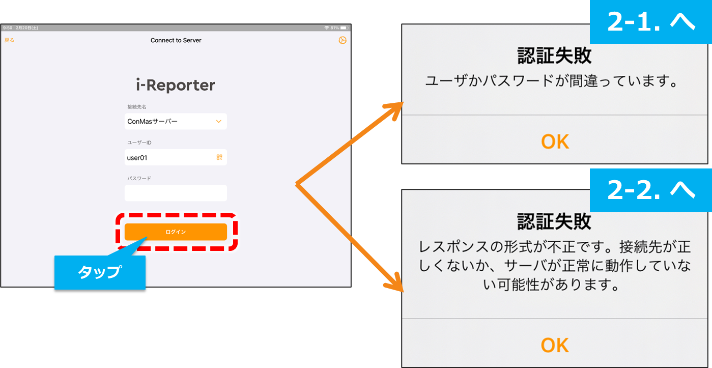 4.「i-Reporter(iOS版)」で「Error(Receive List)」メッセージが表示される。