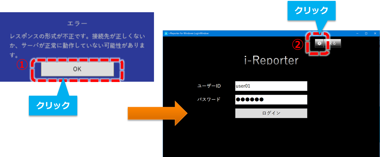 「エラー レスポンスの形式が不正です。接続先が正しくないか、サーバーが正常に動作していない可能性があります。」
