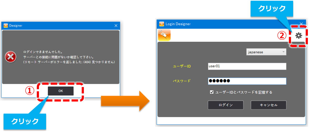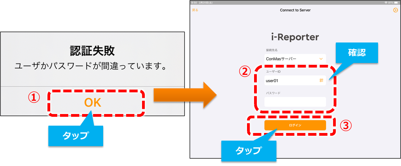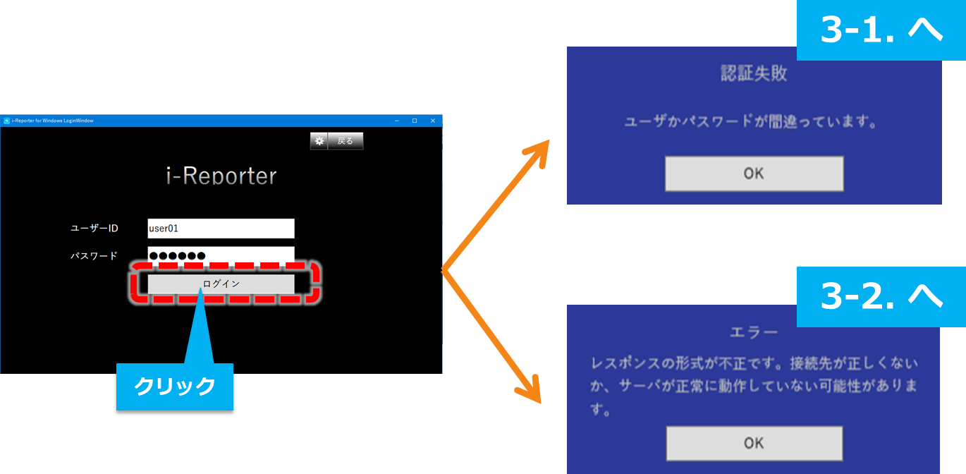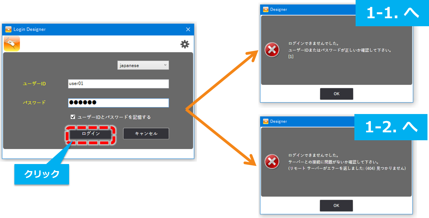 「ユーザーIDまたはパスワードが正しいか確認してください。」