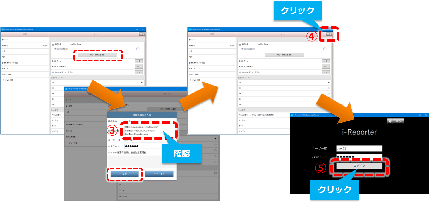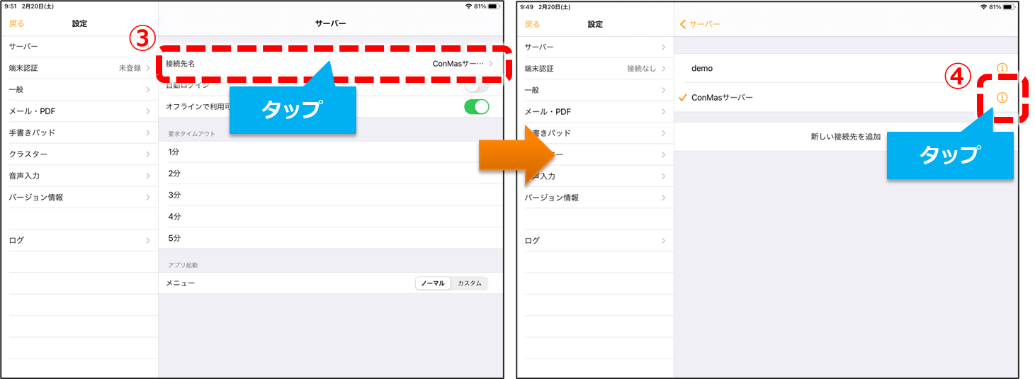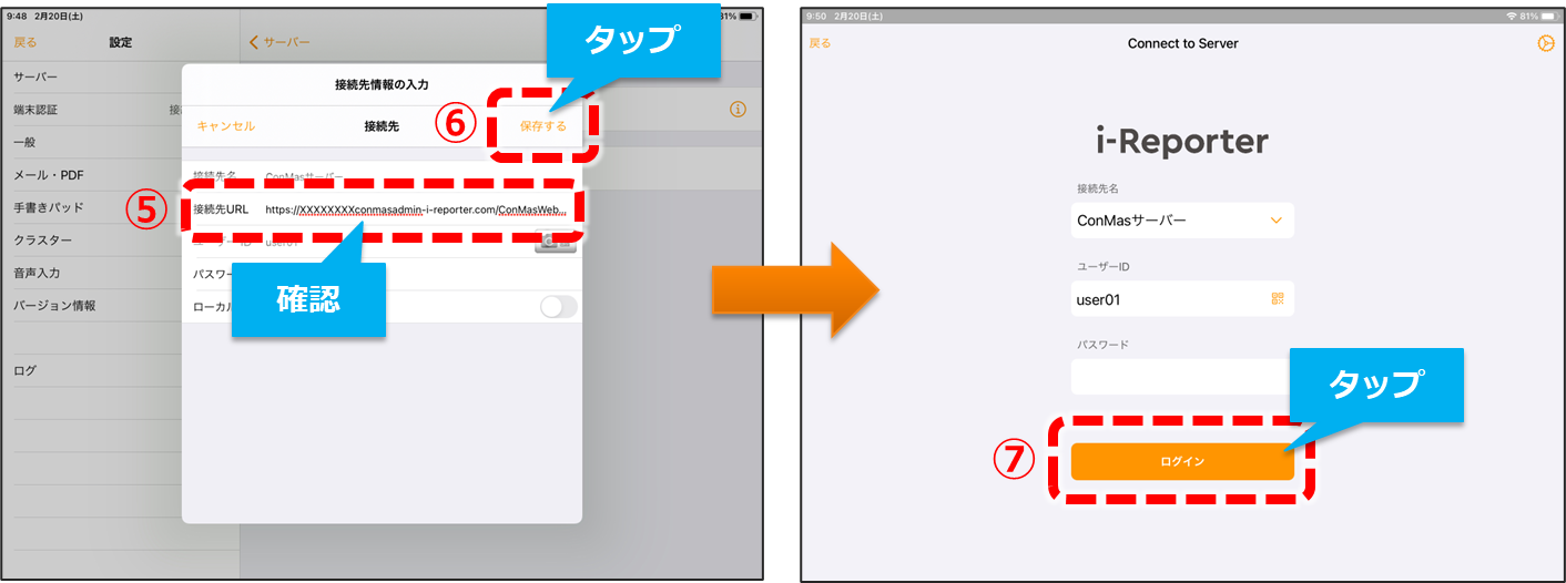 「接続先サーバーURLが正しくありません。接続先画面を確認してください。」